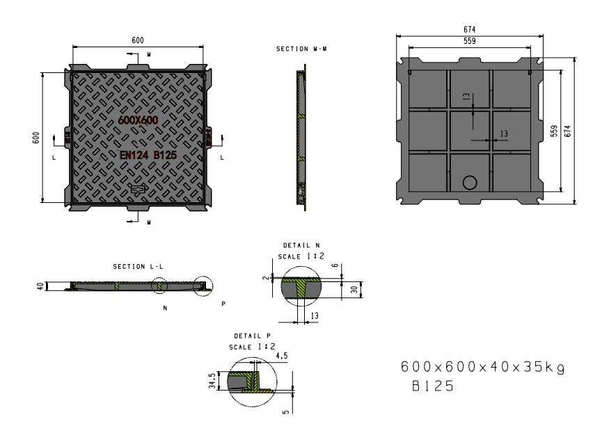| 6060B | 600x600mm | 700x700mm | 40mm | EN124 B125 |
